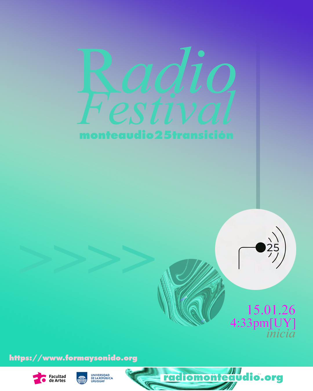 - Del 16 al 19 de enero de 2026 transmitiremos en bucle a lo largo del día y de la noche los conciertos realizados en vivo a lo largo del año 2025 en el marco del Festival Internacional de Arte Sonoro _monteaudio25transición_ y que se indican a continuación:
