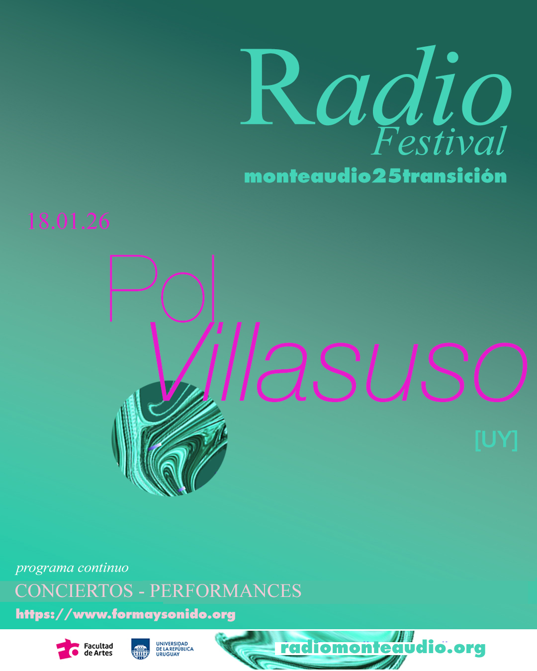 - Del 16 al 19 de enero de 2026 transmitiremos en bucle a lo largo del día y de la noche los conciertos realizados en vivo a lo largo del año 2025 en el marco del Festival Internacional de Arte Sonoro _monteaudio25transición_ y que se indican a continuación: